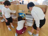 6月に、縦割り遊びとして宝探しゲームを行いました。子どもたちは、自分の選んだものが見つからないように工夫して隠していました。また、3分という時間の中で一生懸命探そうとしている姿も見られました。