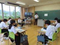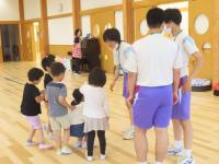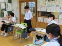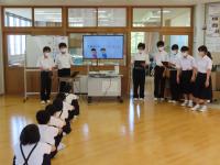 7月8日(月)、家庭科の授業の一環で、三崎中学校3年生と一緒に本校9年生3名がつばき保育園を訪問し、園児たちと交流しました。例年お世話になっている宝立保育園とは違い、大勢の幼児を前に、最初は関わり方を躊躇していた3人。それでも、自分たちが用意した遊びを楽しんでいる幼児の様子を見て、少しずつ自分から関わろうとする姿が見られました。実習後は、「保育士さん、すごすぎる。」の一言。幼児と関わる楽しさと難しさを痛感した9年生でした。つばき保育園の皆様、三崎中学校の先生方・3年生の皆さん、本当にありがとうございました。