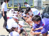 7月3・4日、1~5年生が飯田小学校のプールへ行って水泳教室をしました。