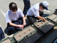 6月19日(水)の貴重な昼休みに、全校児童生徒そして職員でプランターの花の種植えをしました。珠洲市教育委員会様からいただいたプランターと花の種を、全員で気持ちをこめて植えました。花を見るのが楽しみですね。