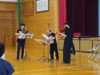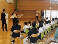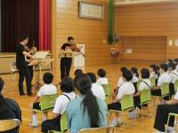 6月21日(金)3限目、本校児童生徒と避難者の方々対象に演奏会が開かれました。オーケストラ・アンサンブル金沢の方3名がたくさんの曲を演奏してくださいました。その中でも、魔王の演奏のときは、中学生からどよめきが起こり(音楽で学習したので)、真剣に聴く姿が大変印象的でした。楽しい演奏とトークで、元気と勇気をいただきましたし、たいへん癒されました。ありがとうございました。