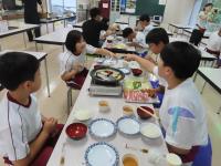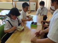 6月は「食育月間」です。食育月間では、国、地方公共団体、関係団体などが協力して、食育推進運動を重点的かつ効果的に実施し、食育の一層の浸透を図ることとしています。そこで、1・2年生は21日(金)の5限目に、7年生から食事をする際に気をつけることを教えてもらいました。かるたや7年生が作ってくれたすごろくで遊んだり、茶碗や箸の持ち方を教えてもらったりしながら、食事の大切さを考えることができました。