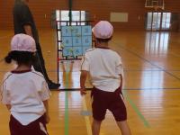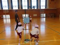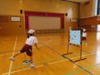 宝立小中学校に届いたストライクアウトを1・2年生で行ってみました。まずは近い所から試して、そのあと少しずつ距離を離していきました。投げたボールがくっつくとどの子も楽しそうに楽しそうでした。