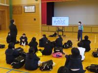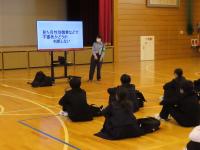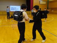 5月16日(木)、珠洲警察署から水口さんと大町さんを講師としてお越しいただき、不審者対応避難訓練を行いました。5限目は前期課程の児童を対象に、6限目は後期課程の生徒を対象に講話と訓練を行いました。「いかのおすし」の確認と不審者から逃げる訓練、後期課程においてはつかまれた時の護身術を演習として行いました。児童生徒はもちろん、先生方もみな、真剣に取り組むことができました。水口さんと大町さんの説明もとてもわかりやすくて、子どもたちにもしっかりと伝わり、理解することができました。お忙しい中、ありがとうございました。