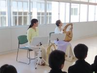 ライアーの演奏に合わせて、みんなで歌う場面もありました。児童生徒はもちろん、先生方もリラックスしながらも興味津々になり、参加することができました。演奏会の終わりには、楽器演奏の体験もさせていただきました。癒されるひとときをありがとうございました。