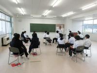 5月24日(金)6限目、後期課程生徒全員を対象にして、本校スクールカウンセラーの川原先生を講師としてお招きし、「考え方のクセについて考えよう」というテーマで特別授業をしていただきました。導入では、生徒役の川原先生と先生役の小畠先生が廊下ですれ違う場面を設定し、生徒が「先生!」と呼び止めようとしても先生は無視して歩き去ってしまったというシーンがありました。これを見た生徒たちに、みんながこの生徒だったらどう思うか考えさせました。同じ一つの場面ですが、いろいろな感情・考えがあることがわかり、これが考え方のクセだと教えてくれました。クセの原因、悩んでいる人への励まし方等、「心のケア」について一緒に考えながら、学ぶことができました。今後の生活に十分生かされる授業になりました。先生方も生徒たちの様々な意見(考え)を聞く中で、驚嘆・共感しながら共に考えることができました。素敵な授業をしてくださった川原先生、お忙しい中、ありがとうございました。