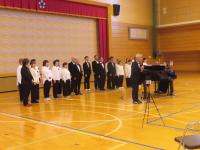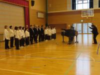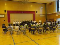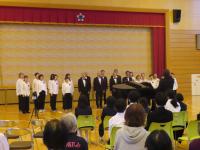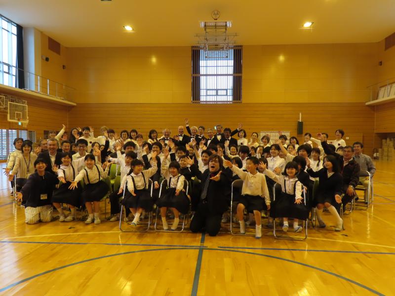 5月28日(火)、宝立町の避難者・本校の児童生徒を元気づけようと、氷見第九合唱団(25名)が来校し、コンサートを開いてくれました。「ふるさと」「春夏秋冬をテーマにしたメドレー」「今ここに」「第九」の合唱、オペラ歌手の方による「オーソレミオ」「千の風」を披露していただきました。体育館中に響き渡り、感動と勇気、そして元気をいただきました。本当にありがとうございました。最後に全員で記念撮影をしました。