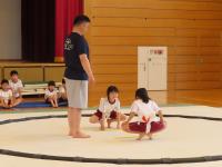 5月30日(木)、珠洲市相撲連盟の加護さんの指導の下、相撲体験教室を行いました。4年生がリーダーシップを発揮し、13名のちびっこ力士が参加しました。四股、すりあし、ぶつかりという相撲の基本的な動きや礼儀等、子どもたちは真剣にそして楽しそうに取り組みました。加護さん、お忙しい中ご指導ありがとうございました。