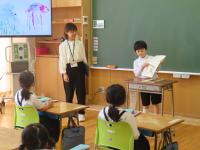 6月4日(火)4限目の国語の時間、「スイミー」を学習しました。今回は音読発表をしました。2年生の谷中さんが1年生に対してスイミーのお話の音読発表をしました。そして、谷中さんの好きな場面を紹介したあと、1年生から感想を述べてもらいました。実りある有意義な学習時間となりました。