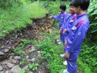 6月4日(火)1・2限目に、宝立町三大スポットの2つ、法住寺と曽の坊の滝の現状を調査しに行きました。先輩方が続けてきた伝統的なこの取組を、ふるさと珠洲科(総合)で学習活動を進めていきたいと、9年生は考えています。先日の地震があったことで、曽の坊の滝までの道が土砂災害のために遮断されていることがわかりました。探究学習を進める上で、少しずつ見えてきた新たな課題も見えてきました。地域の方や行政の方の力もお借りしながら、9年生3名でできることを考え、学習していきます。応援よろしくお願いいたします。