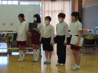 5月22日(水)は小中別集会の日で、この日は中学校集会がありました。集会では、中間テストに向けての勉強法について情報を共有しました。4つの縦割り班に分かれて、それぞれに出された意見を全体で発表・共有し、翌日から行われるテストに向けて、各自が参考にすることのできる素敵な集会となりました。会の終わりに、校長先生から「しっかり睡眠時間をとること、勉強時間を確実に確保して集中して取り組むこと」とアドバイスもいただきました。テストでは、全員が成果を出せるといいですね。先生方も精一杯サポートと応援をしています。