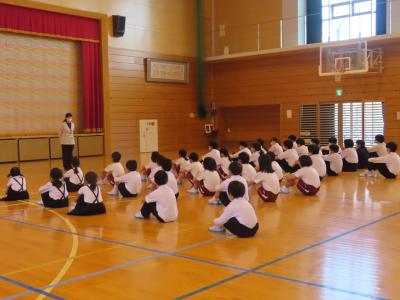 集会の後半では、花木先生から「中庭の遊具の使用」について、瀬戸先生から「トイレの使い方」について注意事項も含めてお話がありました。安全に、大切に使ってほしいと思います。