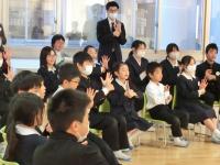 12月24日(水)午後、2学期の終業式が行われました。校歌斉唱の後、校長先生の式辞、次のようなお話がありました。「2学期を振り返ると、皆さんの活躍の場がたくさんありました。まつり、運動会、青潮祭、生き物観察報告会とSDGs学習取組報告会など、本当によく頑張りました。」とお褒めの言葉から始まりました。その後、今年の漢字一字の紹介をしました。今年は「熊」という漢字です。また、1300人の小中高生のアンケートでは、①米、②押・恋、③楽という結果だったことを紹介しました。そして最後に、3学期に向けて「3学期の目標を立てて、短い期間ですが、充実した学校生活にしてほしい」とお話されました。みんな、真剣に話に耳を傾けていました。ともに、がんばりましょう。
