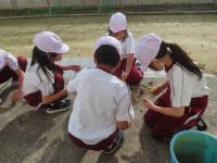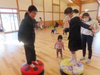 せっかく作ったおもちゃなので、昼休みには、他の学年の人にも遊んでもらいました。いつもはお世話をしてもらうことが多い低学年ですが、この日は、上級生におもちゃの説明をする貴重な姿が見られました。