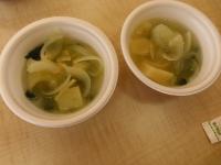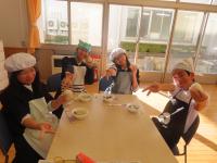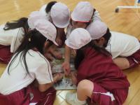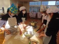 12月19日(金)、5年生が調理実習をしました。調理したのは、ご飯とおみそ汁です。ご飯は中が見える透明のお鍋で炊いて、炊きあがる様子を観察しました。おみそ汁は煮干しで出汁を取りました。おみそ汁の実もみんなで話し合って、じゃがいも・玉ねぎ・わかめに決めました。食品の栄養について学習したので、1杯でより多くの栄養が取れるように工夫しました。調理実習に必要なものは前日に近所のドラッグストアへ歩いて買いに行ったのですが、ここでは算数の単位量あたりの計算を思い出して、じゃがいも1個あたりがお得なのはどの袋か…などを考えながら買い物をしました。4人で協力しながら調理を進め、完成したおみそ汁は4人共おかわりするほど美味しく出来上がりました。ご飯はおこげができたり、少し固めになったりしましたが、珠洲の塩をふり、自分でおにぎりを作って食べました。余った分は6年生や先生方にも小さなおにぎりにして食べてもらいました。学習したことを生かして調理を進め、自分達も周りの方も笑顔になる調理をすることができました。
