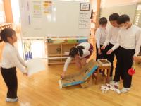 12月11日(木)、2年生が町探検にでかけました。行き先は「つばき保育園」です。園の先生方に質問したり、園児たちと楽しく有意義なひとときを過ごしたりしたことで、素敵な思い出ができました。園児の皆さん、ご協力いただいた園の先生方、ありがとうございました。