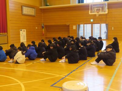 12月8日(月)は前期課程の児童、15日(月)は後期課程の生徒を対象に、桝蔵スクールカウンセラーによる「心のサポート授業」をしていただきました。「地震発生時にどんな行動をとるか」、「地震に備えてどうしているか」等、各自のことについて確認した後で、リラックスする方法や嫌なことを忘れるためにとる行動等について、くわしく丁寧にお話されました。児童生徒も真剣に考え、理解を深めることができました。今後の生活にも役立ちます。桝蔵先生、ご指導ありがとうございましまた。