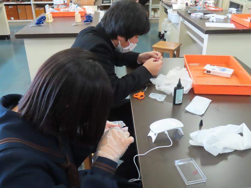 1月15日(木)、石川県水産総合センターの職員の方を講師にお招きし、昨年度から学習している珠洲の海藻について現在の状況を教えていただきました。震災から2年、土地の隆起、土砂の流入、加工する施設の状態などによって、海藻の数や珠洲の産業にどのような影響がでているのかを学びました。また、レジンクラフト作りにも挑戦しました。お忙しい中、教えてくださりありがとうございました。