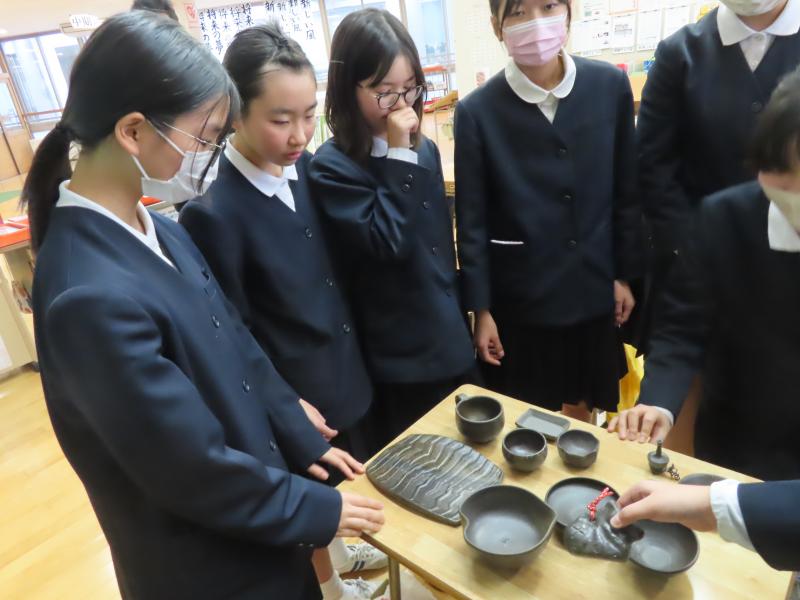 1月19日(月)、珠洲焼作家の方を講師にお招きし、お話を聞いたり、質問したりしました。珠洲焼に対する想いがとても熱く、これからの珠洲焼が珠洲市の産業として残るためにはどうしたらよいのかなど聞くことができました。また、作品を拝見し、改めてその技術の凄さを実感しました。お忙しい中、いろいろ教えてくださり、ありがとうございました。