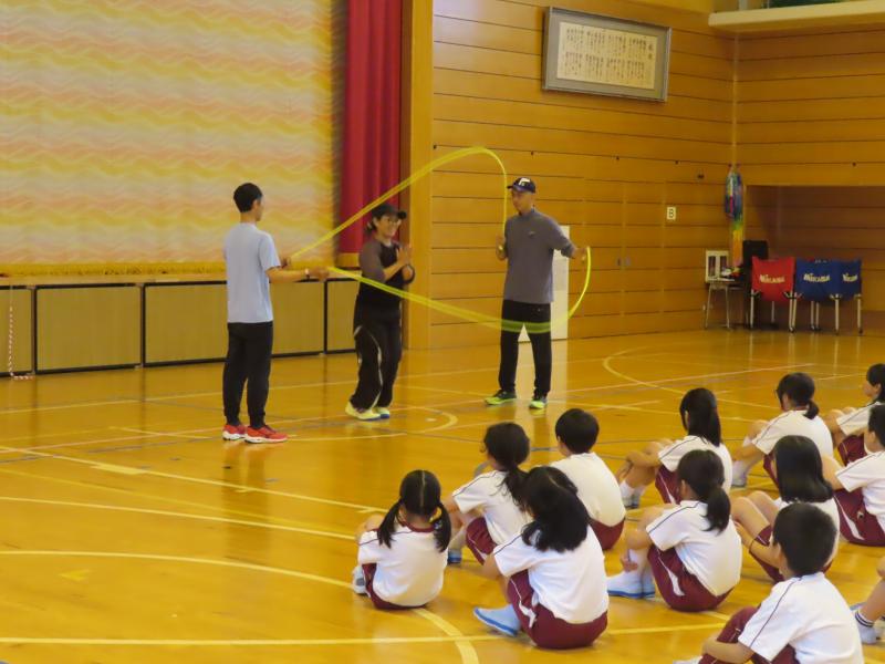 6月23日(月)5限目に、3名の達人をお招きし、ダブルダッチの体験をしました。RUOさん、のりさん、おかもんさんの3名が、説明と実演をし、後半は1~5年生と6年生~9年生に分かれて、縄跳び体験をしました。5年生まではいろんな跳び方を、6年生からはダブルダッチに挑戦しました。リズム感が大切であることを実感した瞬間でした。指導してくれた3名の講師の皆さん、紹介してくれたリラバンディア代表のもとくらさん、岡田さん、ありがとうございました。