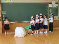 7月7日(月)、上戸小学校の友達を招いて、音読発表をしました。練習の成果を出すことができました。楽しい交流になったようです。いろいろと準備などありがとうございました。