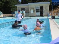 7月7日(月)午後、前期課程の児童が全員、飯田小学校のプールに行って、プール学習をしました。楽しいひと時をすごしました。