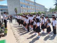 7月11日(金)、1限目の授業中に、火災を想定した避難訓練が行われました。今回は4階の調理室から出火し、後期課程の生徒は、非常階段を通って避難するという行程で行いました。全員が静かに迅速に行動し、短時間で避難場所(玄関前)に集合することができました。
