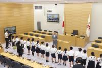 7月11日(金)、県大会前日。野球部(珠洲ベースボールクラブ)が参加した能登地区野球大会において、ブロック優勝し、賞状と優勝カップを納賞しました。そして、校長先生よりお褒めのお言葉と、翌日から行われる県大会の激励の言葉をいただきました。