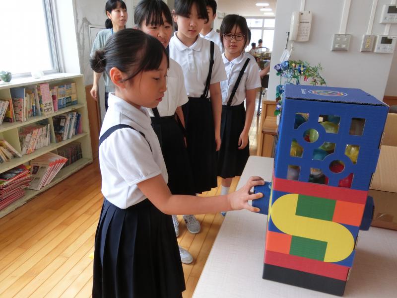 7月17日(木)、手作りガチャを市教育委員会よりお借りして、児童生徒全員がそのガチャを回して、一人2個ずつカプセルトイを頂戴しました。笑顔でガチャを回し、手にする児童生徒の様子が印象的でした。ご寄付をいただき、本当にありがとうございます。