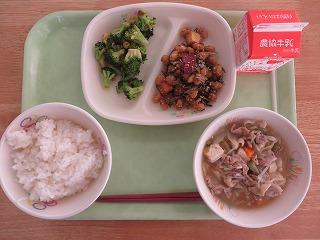 白ごはん 大豆とさつまいものごまがらめ ブロッコリーのごまがらめ 肉豆腐 牛乳