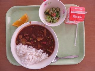 ハヤシライス ヴィナグレチサラダ オレンジ 牛乳