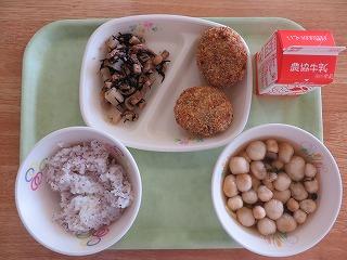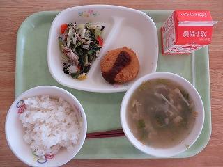 ゆかりごはん 手作りコロッケ 五目煮 すまし汁 牛乳