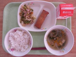 白ごはん 春巻 ホイコーロー 中華コーンスープ 牛乳