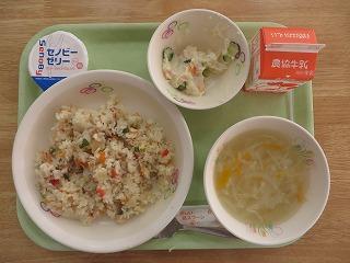 ガパオライス ポテトサラダ コンソメスープ ゼリー 牛乳