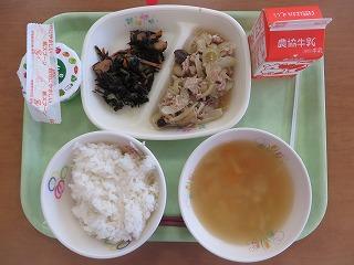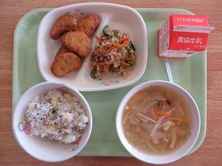 白ごはん ちくわの石垣揚げ 切干大根の甘酢和え 肉じゃが 牛乳