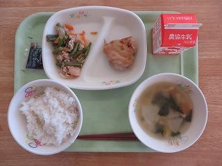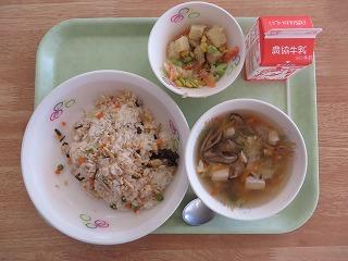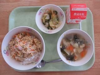 シーチキンご飯 じゃがいものごまあえ 中華スープ 牛乳