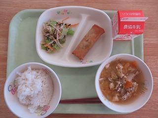 白ごはん 揚げ春巻 もやしのナムル チゲ風豚汁 牛乳
