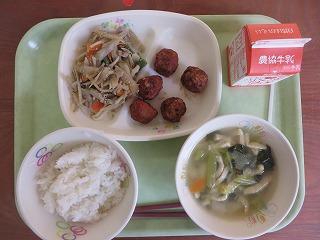 白ごはん ミートボールのケチャップ煮 きんぴらごぼう みそ汁 牛乳