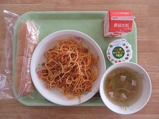 コッペパン スパゲッティミートソース レタススープ ゼリー 牛乳