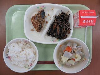 白ごはん さばのごまみそだれ ひじきの炒り煮 豚汁 牛乳