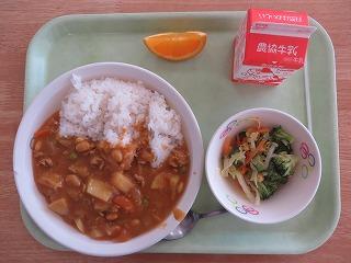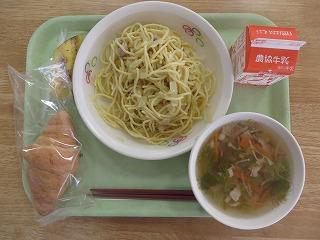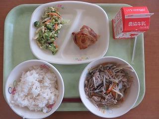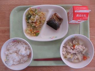 白ごはん さばの生姜煮 野菜炒め みそけんちん汁 牛乳