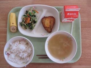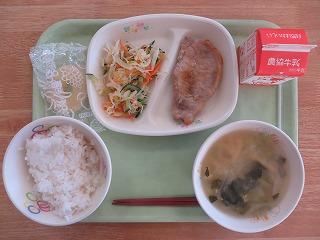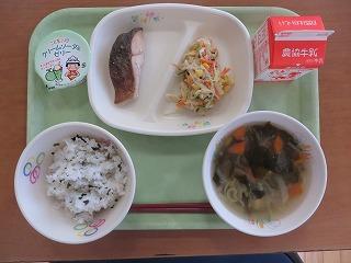 わかめごはん 鮭の塩焼き キャベツのごまマヨネーズ みそ汁 ゼリー 牛乳