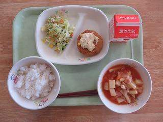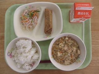 白ごはん 揚げ春巻 バンサンスー 麻婆豆腐 牛乳