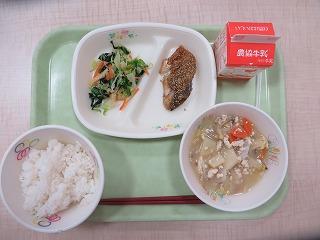 白ごはん さばの胡麻みそ焼き 青菜和え みそけんちん 牛乳
