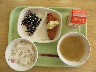 白ごはん 魚のタルタルソース ひじきのマリネ みそ汁 牛乳