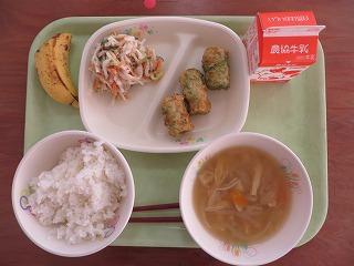 白ごはん ちくわの磯辺揚げ イカくんサラダ みそしる バナナ 牛乳