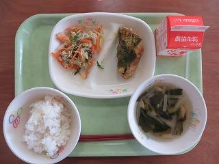 白ごはん サバのかば焼き ごまあえ すまし汁 牛乳