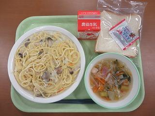 食パン ストロベリージャム クリームスパゲッティ スープ 牛乳