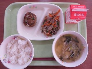白ごはん ハンバーグきのこソース きんぴらごぼう みそ汁 牛乳