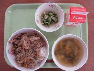 能登牛の牛丼 牛乳 しょうがあえ みそ汁